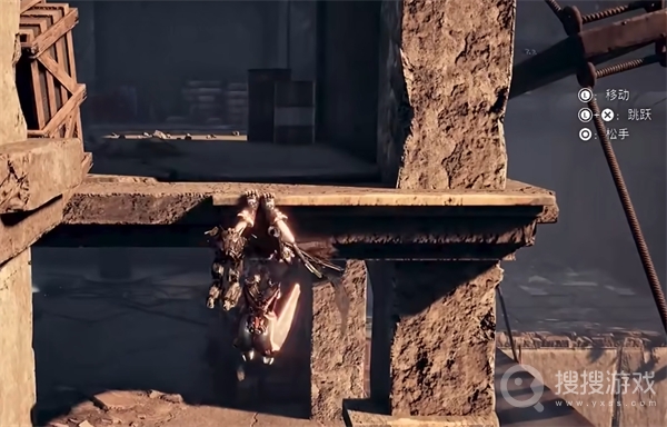 需要注意的是,墙后潜伏着一名敌人,企图偷袭我们。此时,我们应先行招架,再主动靠近引诱其发动攻击。将其击败后,便可安全前行。