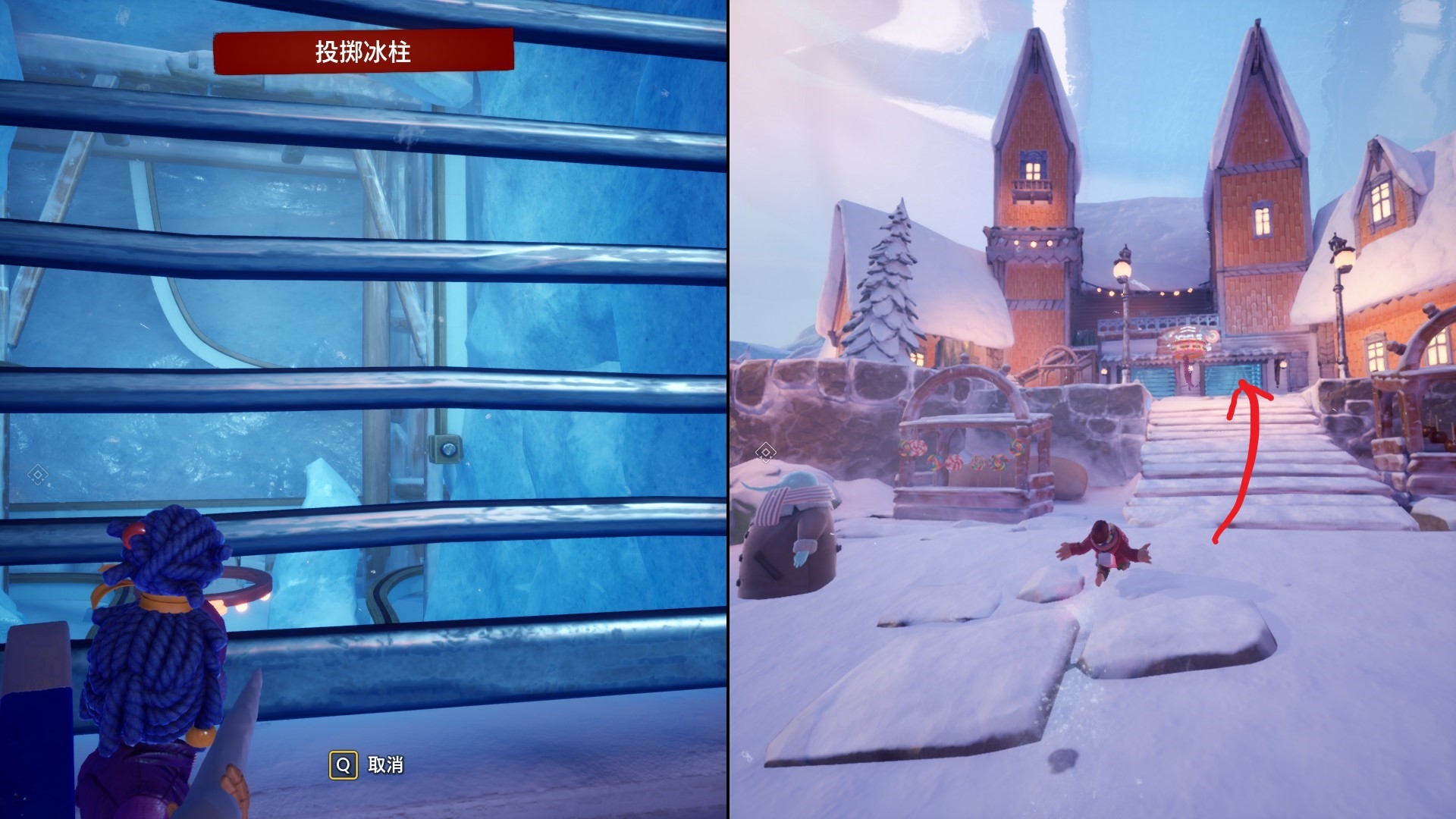 进入需要三座破冰塔的小镇后,激活右边的破冰塔,在雕塑附近的山洞内