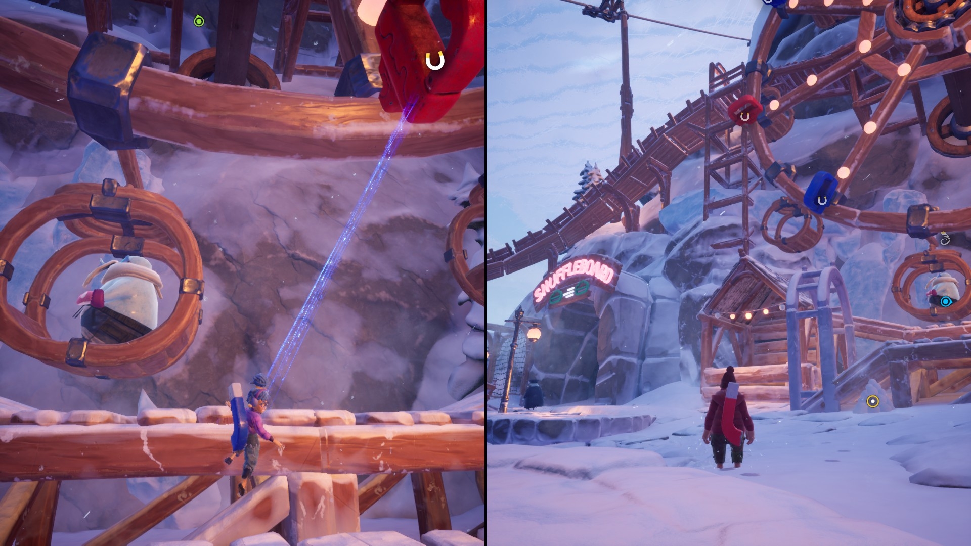 小节开始时剧情会带你来到一个水下基地。钻入水中并上浮,出水面后环绕湖水的冰均为赛道,在一艘小船(成就年年有鱼)附近找到起跑线。