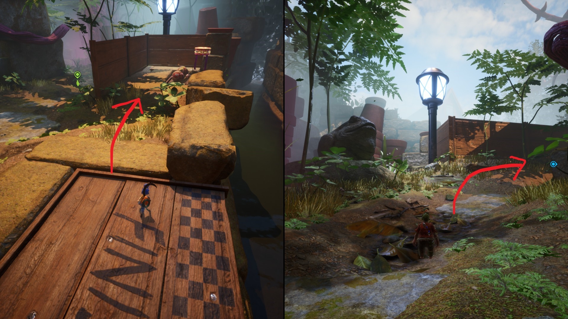 距离迷你游戏 #18不远,小梅为第一棵植物浇水后会来到许多可弹跳蘑菇的区域。不要向前推进主线,向左上进行跳跃。