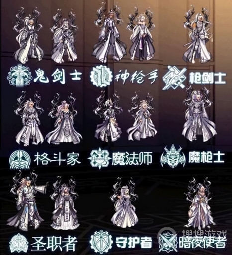 职业:男女枪手,男女鬼剑士,男女格斗家,男女魔法师,圣职者,暗夜使者,守护者,魔枪士,枪剑士