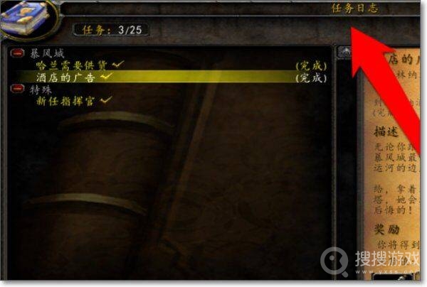 1、启动并登录魔兽世界后,在游戏界面点击任务日志图标。