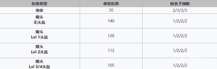 身体/头部/腿(伤害):70/140/63(小型护盾电池)(88/176/79)