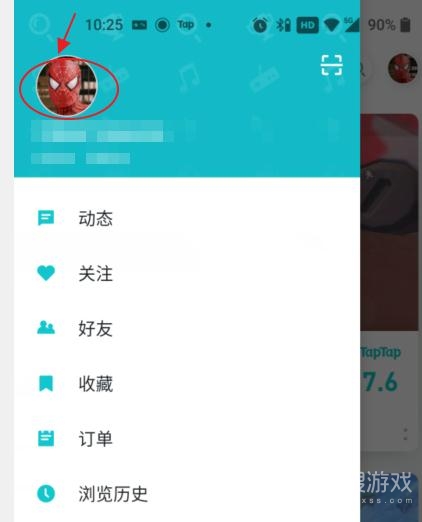 用户首先打开《TapTap》,点击头像打开左侧菜单。