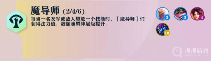 魔导师羁绊的效果是每当一名友军或敌人施放一个技能时,【魔导师】们获得法力值,数额随羁绊层级提升。