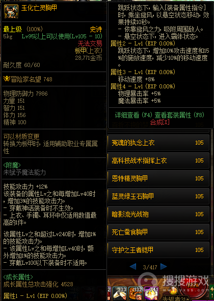 《DNF》105级玉化亡灵胸甲装备属性介绍