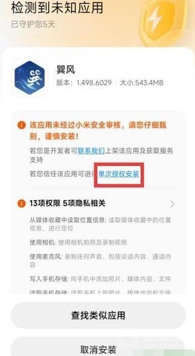1、用户下载软件后,安装时会出现安全提醒,这时会需要点击【单次授权安装】。