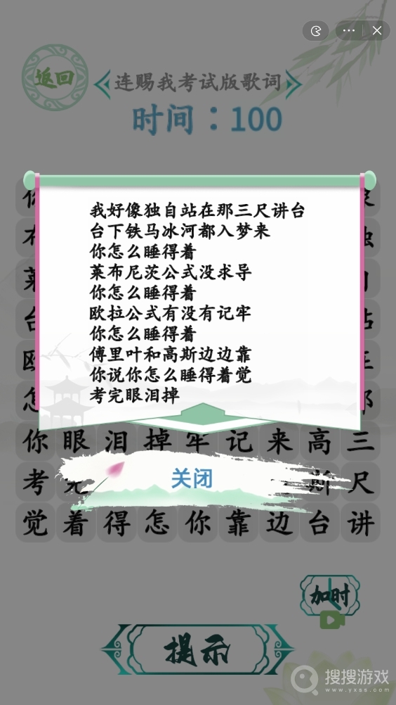 看完这篇攻略的朋友可以在评论区告诉搜搜游戏小编这篇攻略对你有没有帮助,如果没有,希望大家能够说出是哪里没能给予帮助,小编会在后续对《汉字找茬王》赐我考试版方法的攻略进行修改。