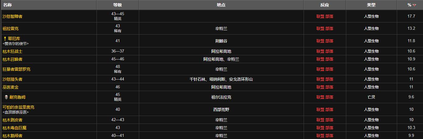 魔精掉落概率最高的是精英怪沙怒智障者。而普通怪物中掉落率最高的则是枯木狂战士。玩家可以在阿拉希高地的坐标(24.3,66.2)处找到枯木狂战士,击杀有10.6%的概率获得魔精。