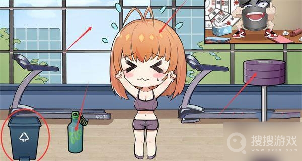 置换垃圾桶这里,先置换窗户外、水瓶、杠铃,和女主会有一个成就,最后置换左下角垃圾桶;