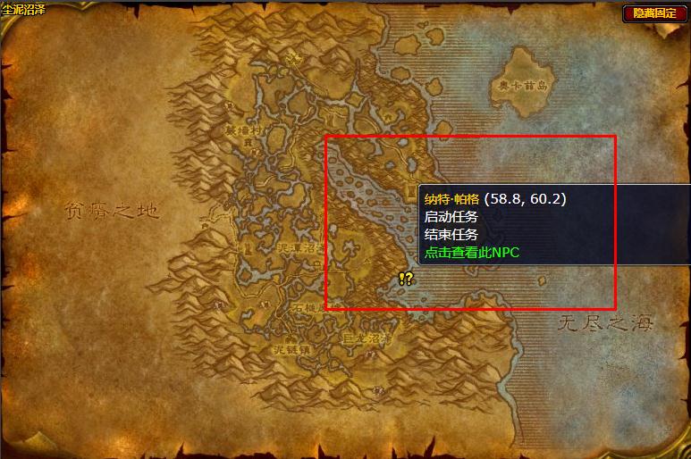 在游戏中,玩家完成纳特的交易任务的方法是玩家首先在尘泥沼泽的NPC纳特·帕格处接取任务。接着玩家对自己使用任务物品,然后向西走可以看到海边有沉船。