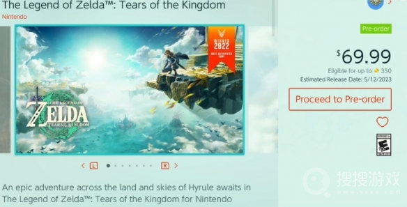 《塞尔达传说:王国之泪》美版的购买价格为69.99美元。