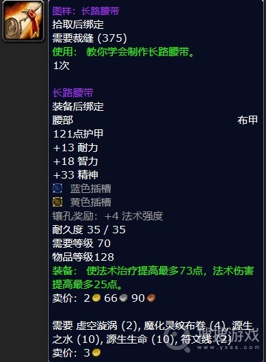 魔兽世界怀旧服图样:长路腰带属性介绍
