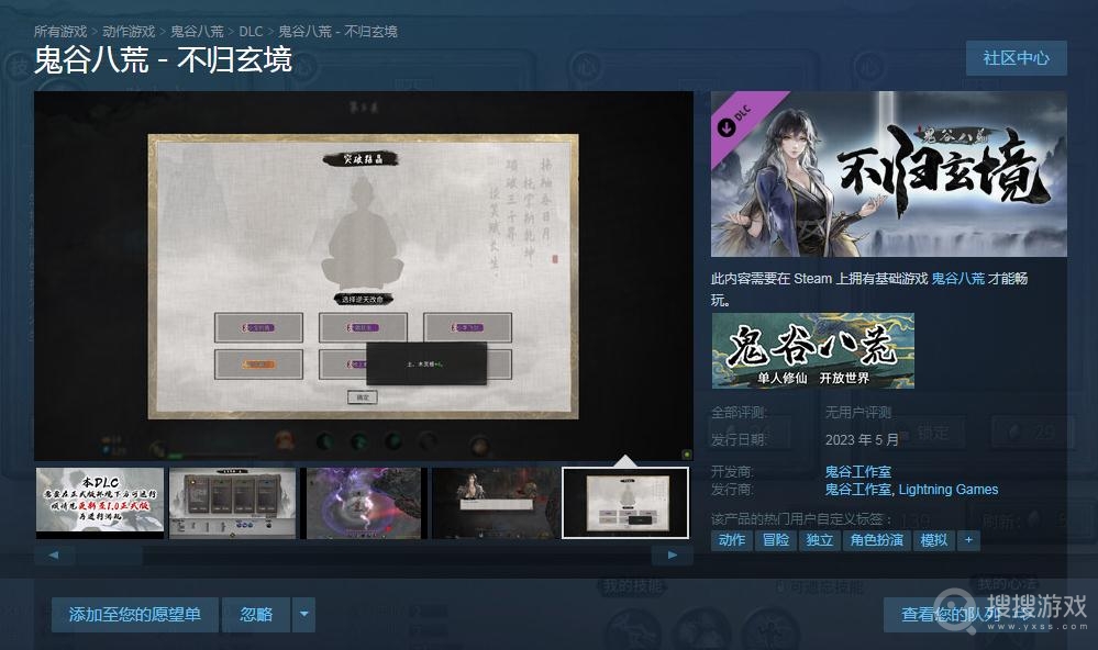 上面就是《鬼谷八荒》DLC不归玄境领取方法游戏攻略的全部内容了,希望能为玩家提供部分帮助。如果攻略有不正确的内容可以在评论区指出,搜搜游戏小编会尽快修改攻略,为玩家提供正确的答案。