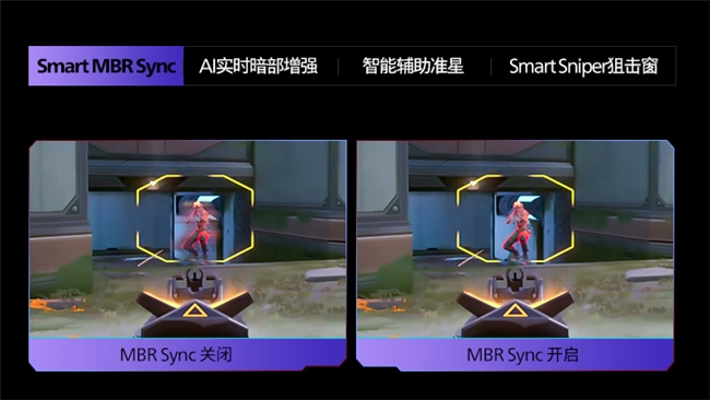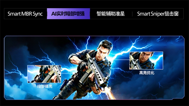 AI维度,则融合多项专属玩家的游戏辅助功能,进一步提升游戏体验。其中,智能MBR技术允许同时启用Smart MBR与自适应同步技术,实现显示器刷新率与显卡输出帧率的实时匹配,避免画面撕裂与卡顿问题,保障画面输出稳定性;实时暗部增强技术,可针对性提升画面暗部区域亮度,清晰呈现阴影中的细节,助力玩家快速识别隐蔽目标;智能辅助准星,准星颜色根据动态画面实时解析,使准星颜色始终跟画面保持反差醒目状态,为竞技操作提供支持;狙击窗功能,模拟倍镜视野效果,有效提升FPS游戏中的射击精度,优化核心操作体验。