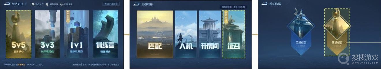 新增模式-随机征召:每一局系统都会从五条分路分别随机征召七名英雄,对战双方无需禁用,直接按照顺序选择本局想用的英雄