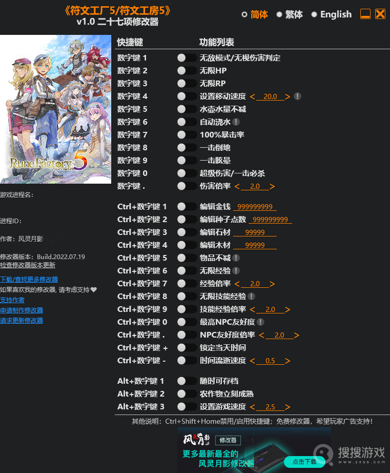 - 2022-07-18 29.52 MB 《符文工房5》v1.0.0十五项修改器[一修大师]