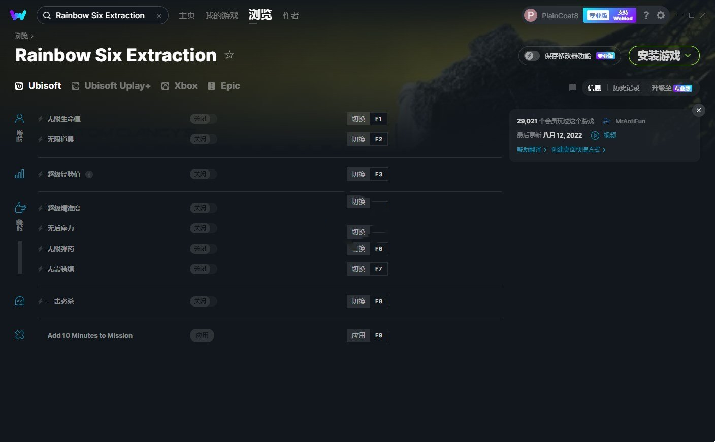 《彩虹六号:异种》v2022.08.12九项修改器[MrAntiFun]
