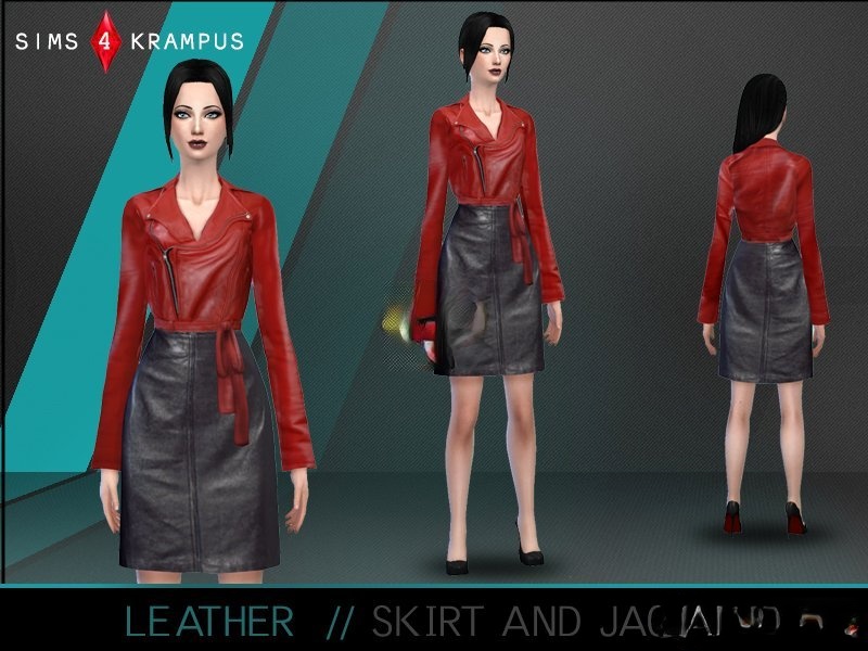 《模拟人生4》红皮衣黑皮裙MOD,使用后就可以在游戏中添加一套时尚的衣服,采用红色皮衣和黑色皮裙的搭配,看起来十分性感,喜欢这种风格穿搭的玩家快来下载吧。